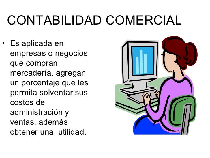 La contabilidad comercial es la rama de la contabilidad centrada en las actividades de un comercio. Gracias a la contabilidad, el comercio logra tener el registro de todas sus operaciones que pueden cuantificarse en términos de dinero. Definicion en: http://definicion.de/contabilidad-comercial/      27/02/16